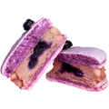 Creamy ruby chocolate ganache and bright blueberry filling, finished with ruby chocolate drizzle and dried blueberries.