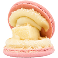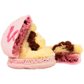 Soft almond shells cradle a heart of rich cheesecake, embraced by strawberry and white chocolate. With its delicate icing touch, this one is all heart and all flavor.